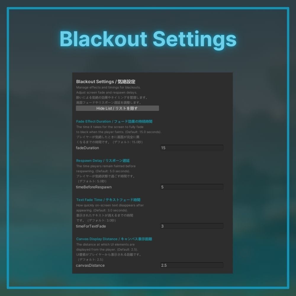 ● Custom Settings: Adjust blackout timing, recovery points, and visual effects.