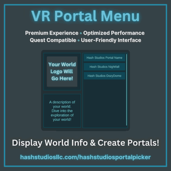 Meet Hash Studios Portal Picker, a Unity UdonSharp Prefab. This tool streamlines virtual navigation by allowing users to select worlds, view key details, and create portals for easy access. A significant advancement for world creation, it consolidates world information and enhances interconnectivity.
